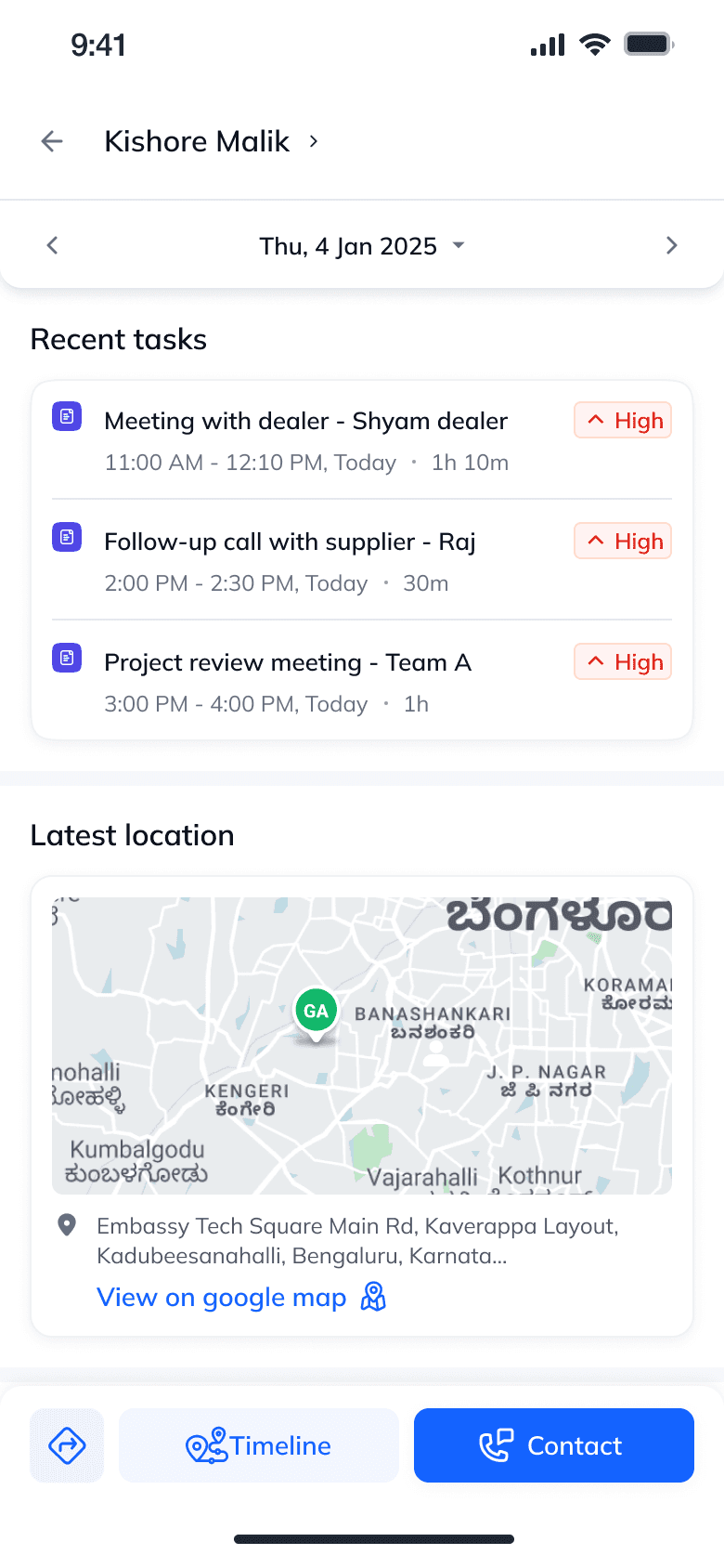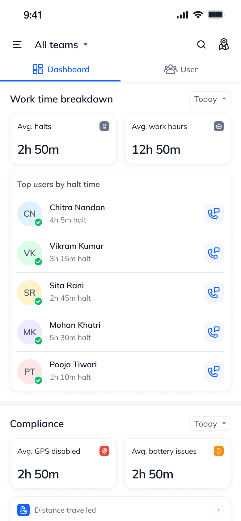 See who’s working, where they are, what they’re doing, and what needs attention -without chasing updates.