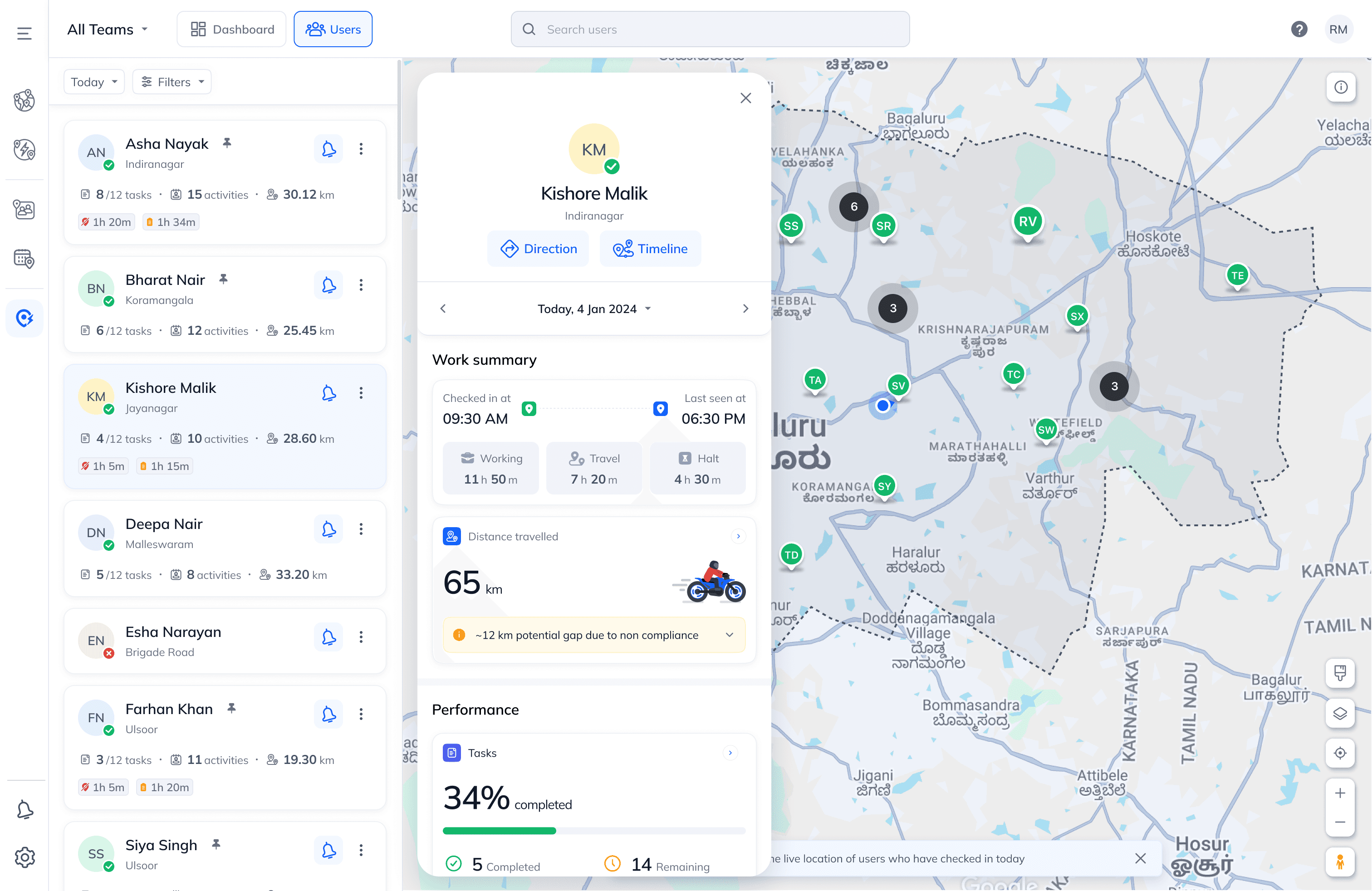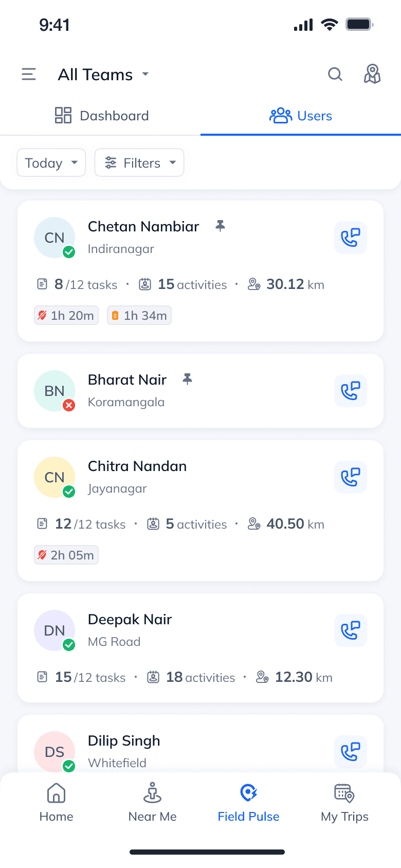 Field Pulse is a single place for field managers to understand daily execution across their team—attendance/start status, live location, activities, travel, idle/halts, and risk signals—so they can coach early, not react late.